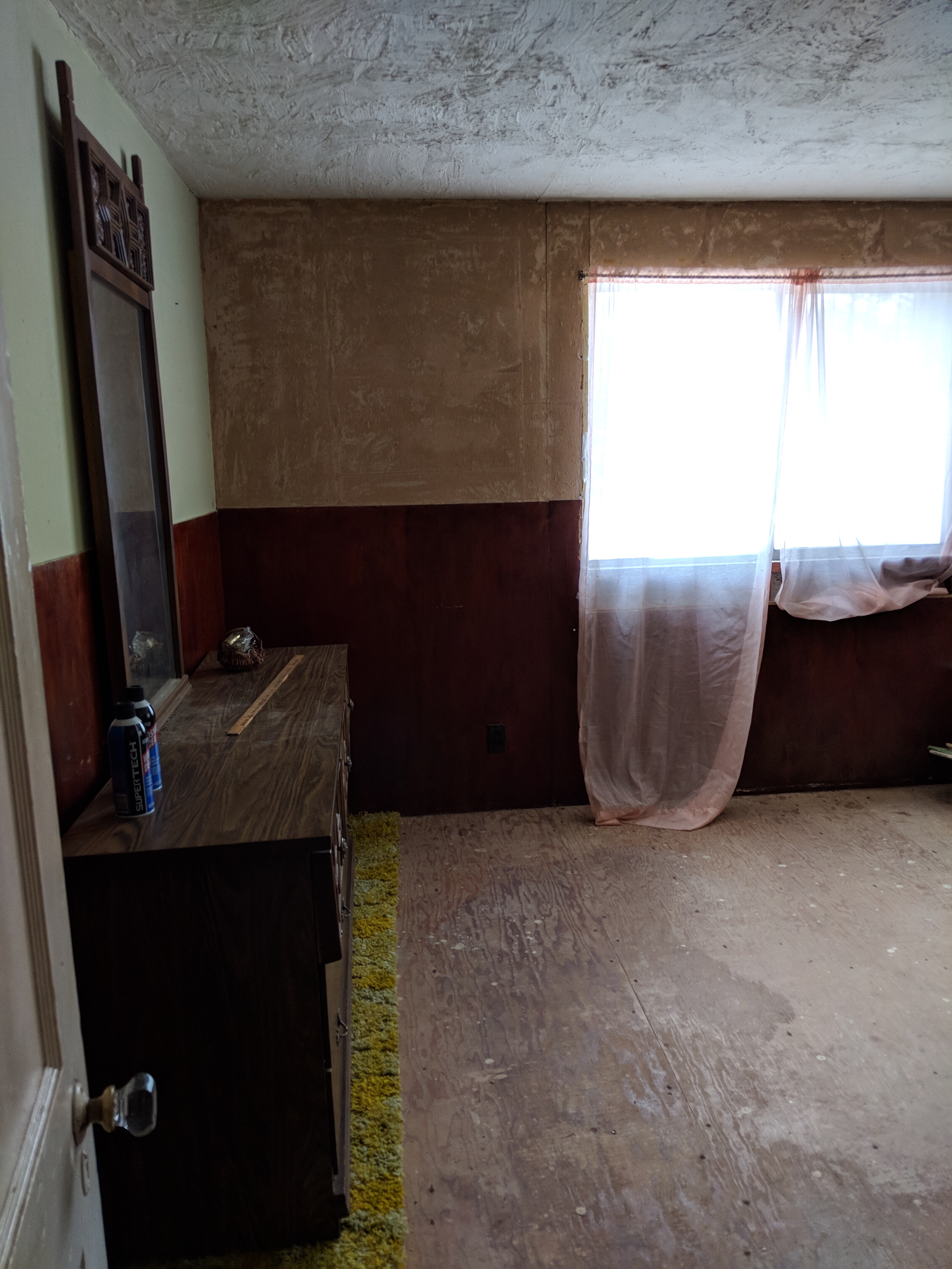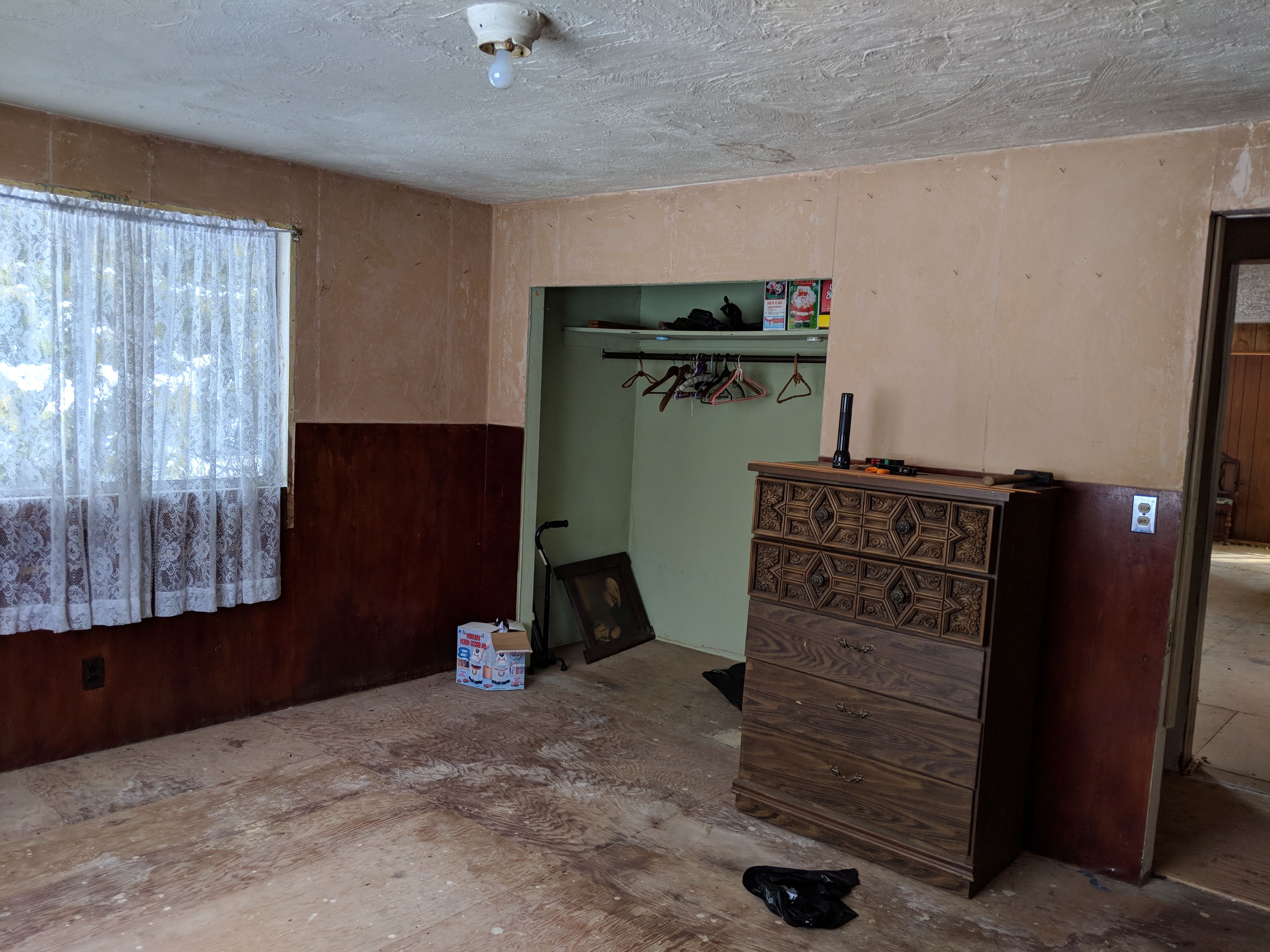 Next we walk to the bedrooms. The downstairs bedrooms had zero insulation when we took down the walls. This is what the main bedroom looked like before.