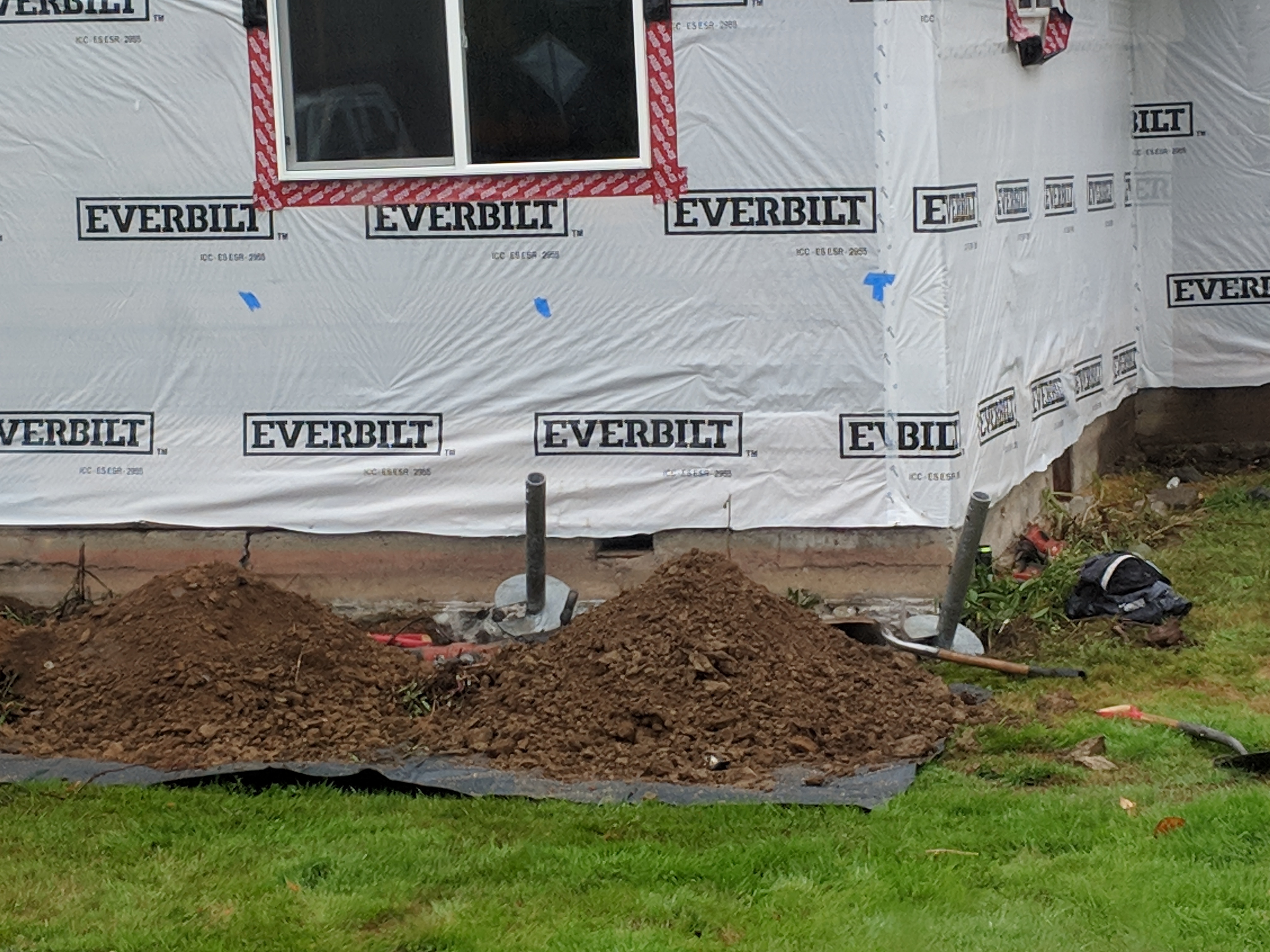 Next, they placed several augers and steel pipes in place to begin the underpinning process.