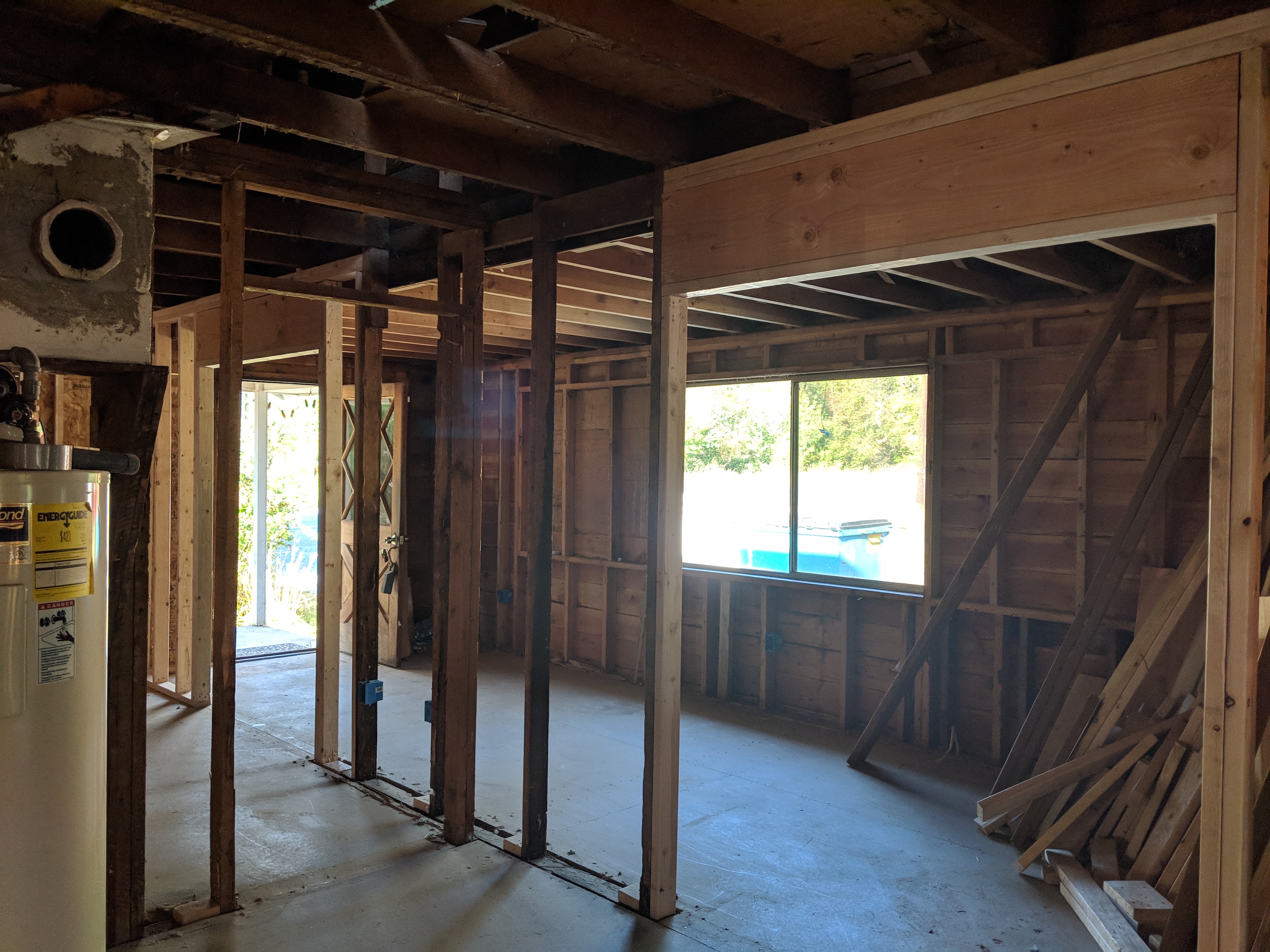 In addition to plumbing, electrical is in process, almost complete, and all the interior reframing has been finished up. All the leftover debris is finally out and you can walk through the entire house without circumventing large piles of rubble.